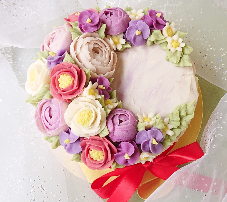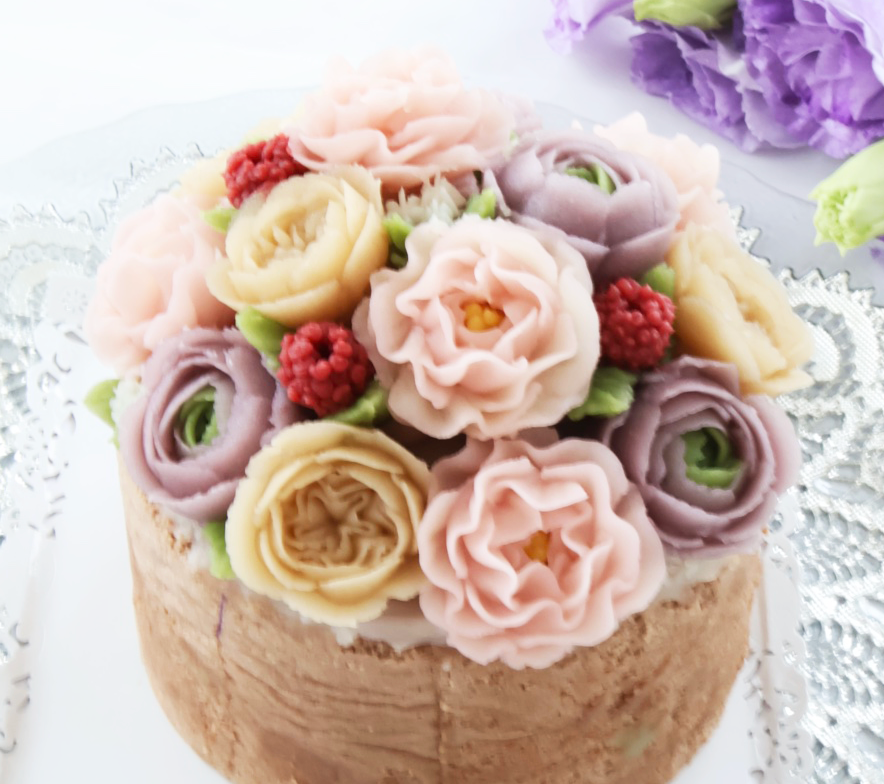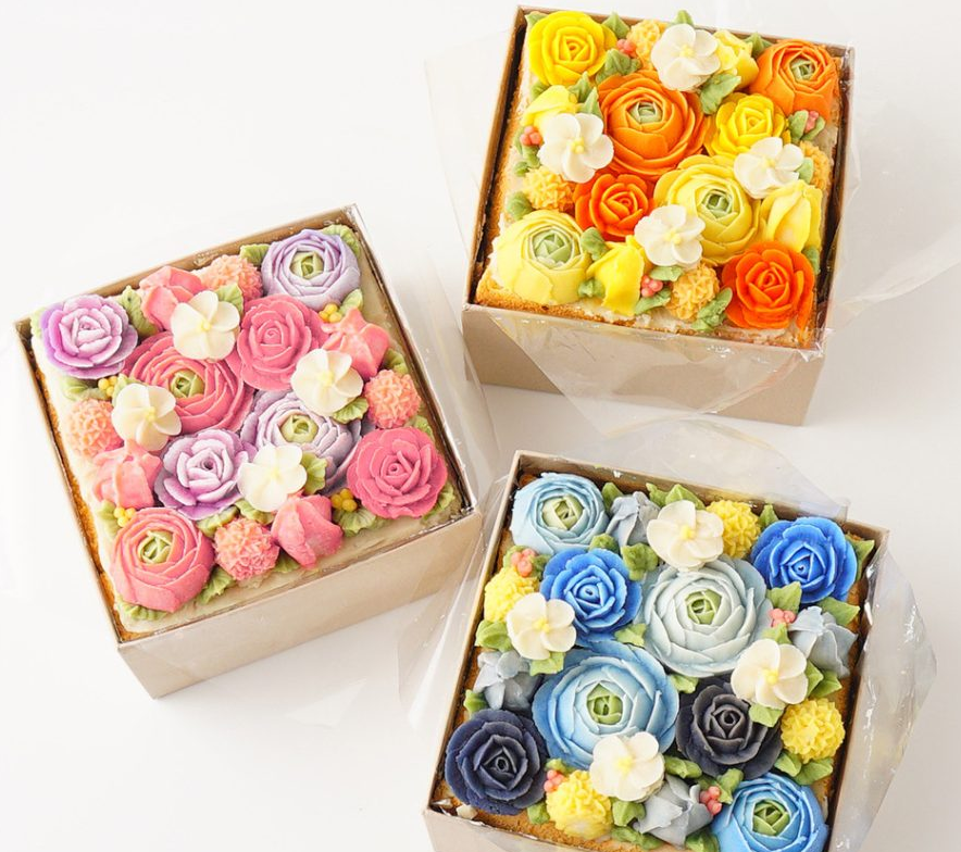 フラワーケーキって聞いたことありますか?クリームで色とりどりのお花を絞り、それをケーキにのせたとても可愛いケーキです。