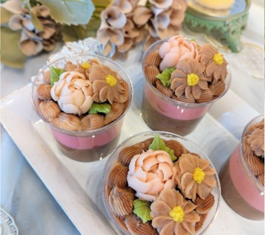 私はあんフラワーと運命の出会いから、そのかわいらしさに魅了され、あんフラワーを広めたいと資格を取得し華水月を立ち上げ、グルテンフリー、バターフリーの身体にやさしく、可愛らしいケーキを多くの方に知ってもらいたいと、あんフラワーケーキとあんこを主体にしたあんフラワー専門店華水月をオープン(2022年12月閉店)